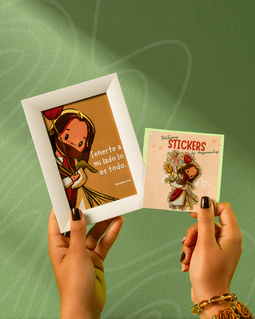 Lleva contigo el recordatorio de que nunca estás sola. Este set especial une el arte y la fe en un paquete pensado para abrazar el corazón o sorpremder a alguien especial.