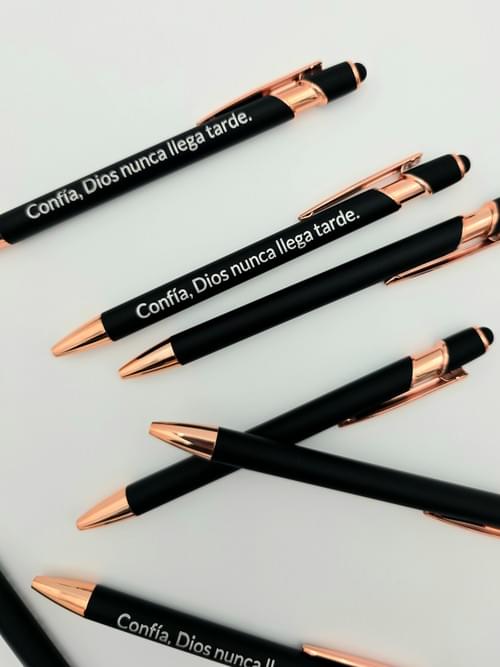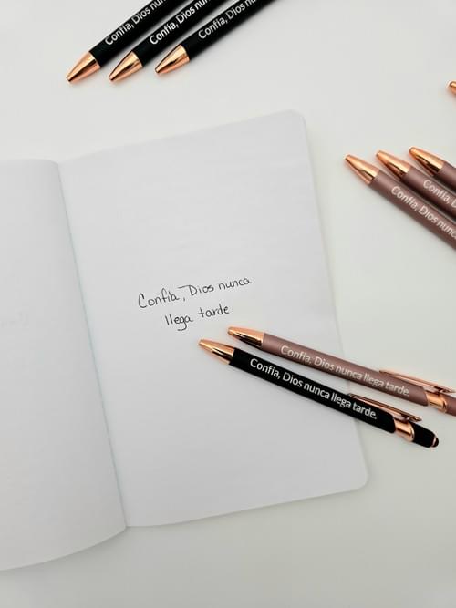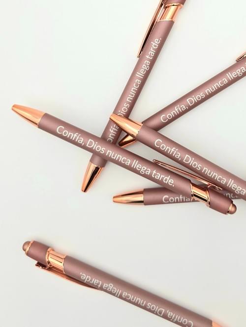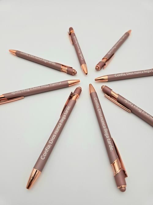 Bolígrafo “Confía, Dios nunca llega tarde”
