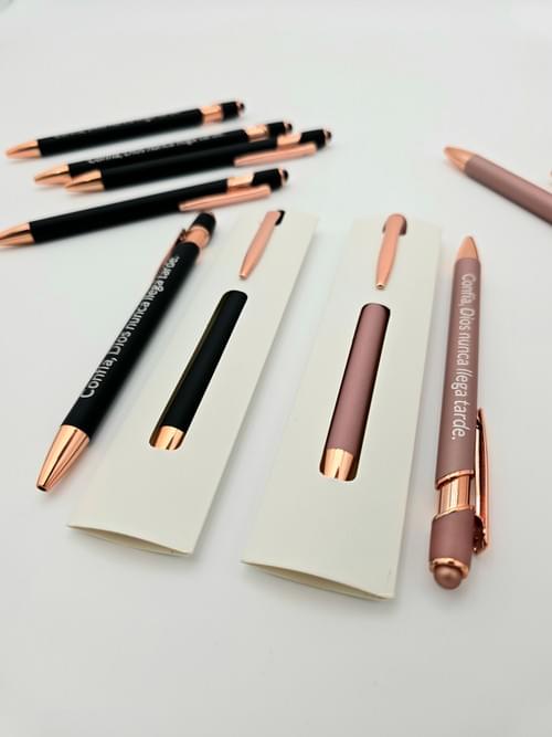 Este elegante bolígrafo de metal combina estilo y propósito, ideal para acompañarte en tus momentos de oración, estudio o trabajo. Su acabado suave y peso equilibrado ofrecen una escritura cómoda, mientras que su mensaje grabado te inspira a mantener la fe, aun cuando los tiempos no coincidan con los tuyos.