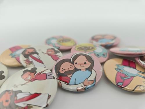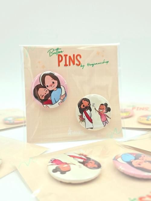 Lleva tu fe contigo, incluso en los pequeños detalles. Este paquetito incluye dos pines llenos de ternura e inspiración, con ilustraciones de Jesús que te recordarán Su amor y cercanía a cada paso. Perfectos para colocar en tu mochila, estuche o chaqueta y llevar un mensaje de esperanza donde vayas. 💛