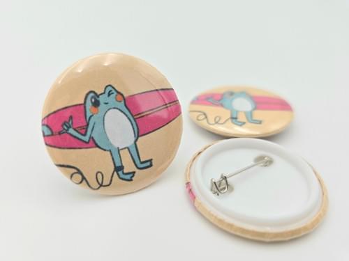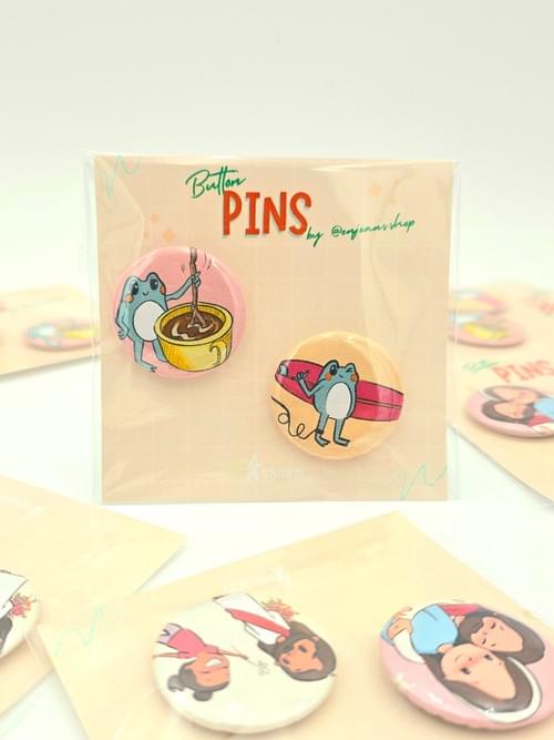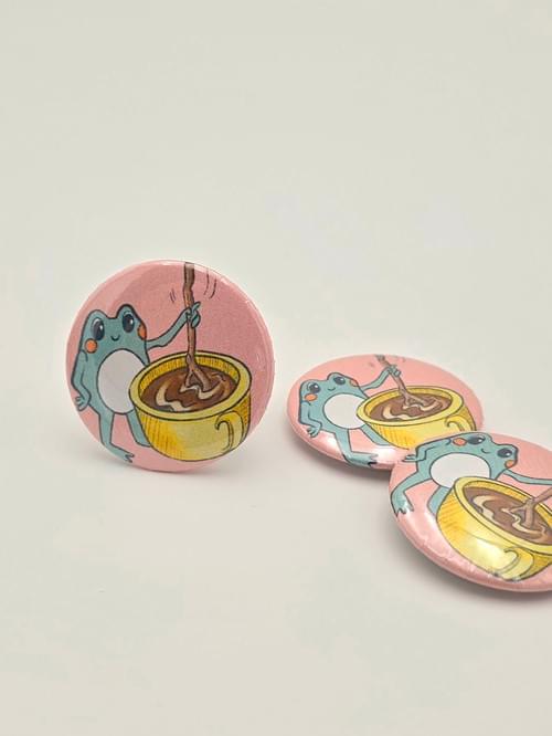 ¡Un toque de alegría para tu día! Este par de pines trae a tus nuevos compañeros favoritos: unos sapitos relajados disfrutando la vida —uno con su tabla de surf y otro con su cafecito en mano. 🌊☕
